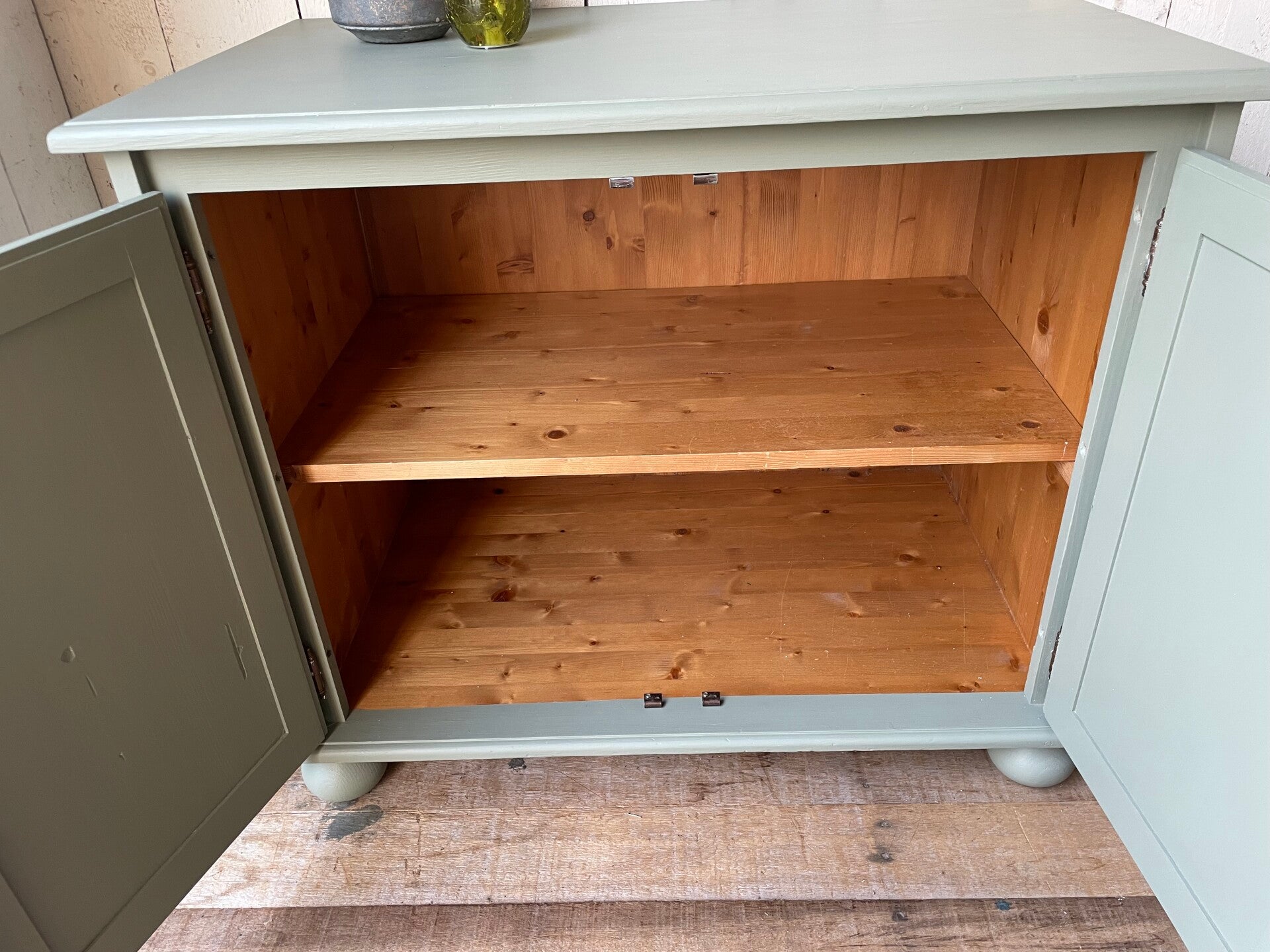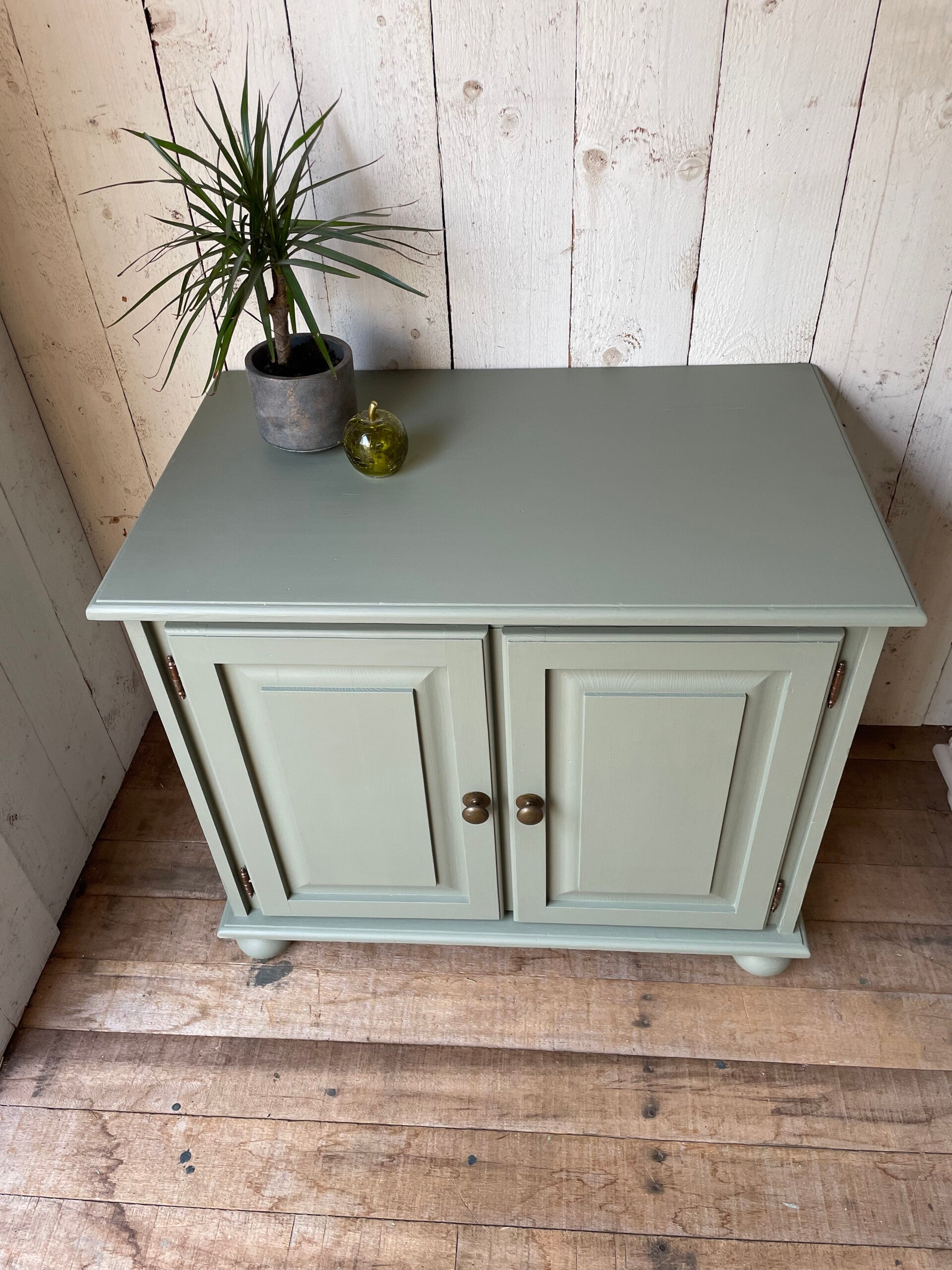 Grenen kastje met veel opbergruimte. Geschilderd in de kleur Acadia Pear van Fusion Mineral Paint voor een warme uitstraling.