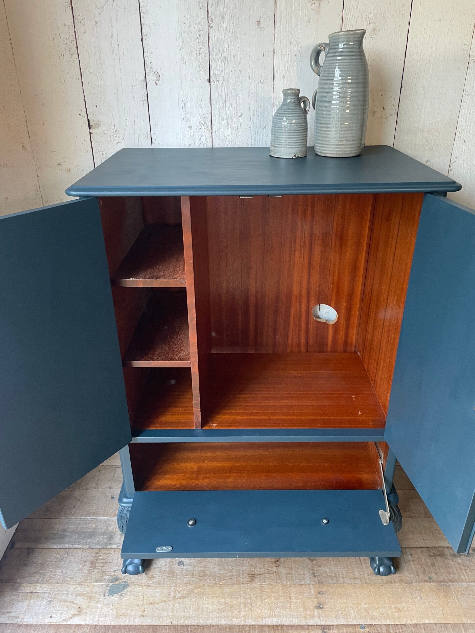 Prachtige Queen Ann stijl kast, gerestyled in een elegante donkerblauwe kleur Chestler van Fusion Mineral Paint.